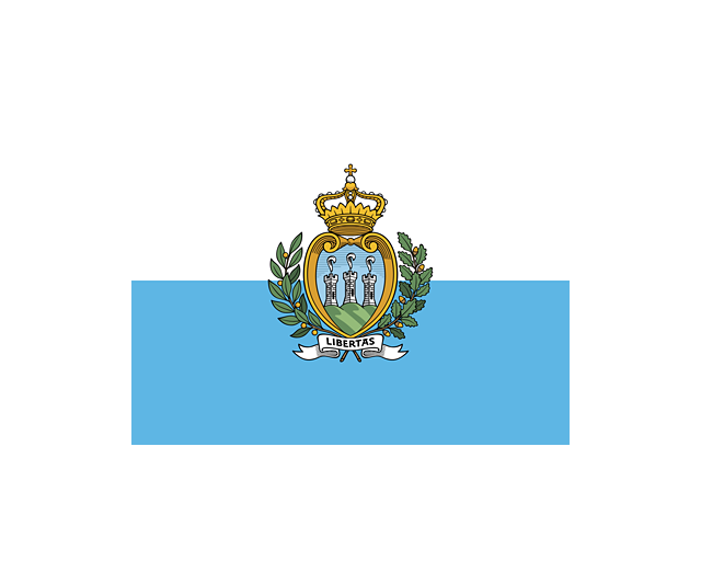 圣馬力諾共和國(意大利語:Repubblica di San Marino),簡稱“圣馬力諾”,是世界上最袖珍的國家之一,位于歐洲南部,意大利半島東部,整個國家被意大利包圍,所以圣馬力諾屬于國中國。圣馬力諾國旗呈長方形,長與寬之比4:3。旗面自上而下由白色和淺藍色兩個平行相等的橫長方形組成,旗地中央是國徽圖案。白色象征白雪,還象征純潔;淺藍色象征藍天。非正式場合則用無國徽國旗。